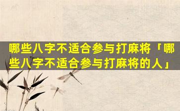 根据八 🐠 字命理学,以下八字类型不适合 🦍 参与 🦈 打麻将: