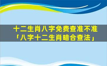 十二生肖八字 🌹 免费查准不准是一个有争议的问题不,同的观点存在分歧。