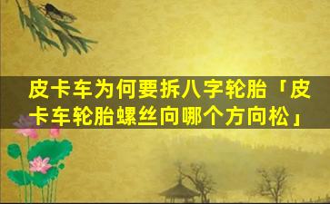 拆卸 🐳 皮 🐞 卡 🐳 车的八字轮胎通常是为了以下原因: