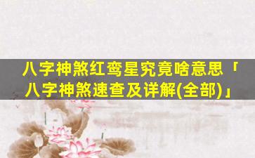 八字神煞:八字神煞是八 🐒 字命理学中的一种判断吉凶祸福的预测方法。它将出生时的八个字(年月日时)与各种神煞进行组合,以推断一个人的性格、运、势福祸。