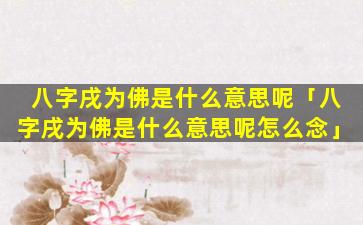 “八字 🐋 戌为佛 🐺 ”的含义