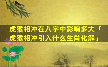 虎 🌸 猴相冲在八字中属于地支六冲之一,其影响 🦉 程度因具体八字格局而异一。般,来说地支相冲会带来动 🐼 荡、变。化或是非