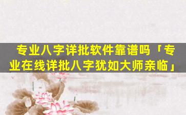某些 🐈 专业八字详批 🌼 软件可能 🐦 是可靠的,但重要的是要进行深入的研究和验证。