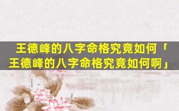 王德峰通过大量的实践和案 🐛 例研究积累了经验,对八字命理有一定深入的掌握 🐯 。