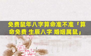 免费算命:生辰八字看婚姻 🐵 ——属鼠