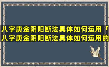 庚金阴 🌷 阳断法是八字命理中的一种判断方法,用,于分析八字中庚金的阴阳属性从而推断其人 🦈 的性格、事、业财运等方面的 🐬 吉凶。