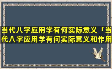 当代八字 🐵 应用学的 🦄 实际意义和价值