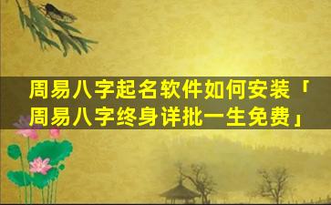 安装周易八 🐦 字起名 🕊 软件的步骤 🦁 :