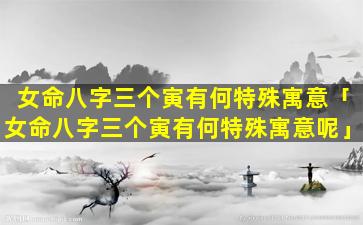 女命八字三个 🐳 寅的特殊寓意: