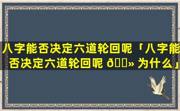 因此,八,字 🌾 ,并不能 ☘ 决定六道轮回它只是一种基于天干地支的占卜系统用于预测一个人的性格、运势和命运走向。而,一个。生物在六道轮回中的流转主要是由其业力和神识所决定的