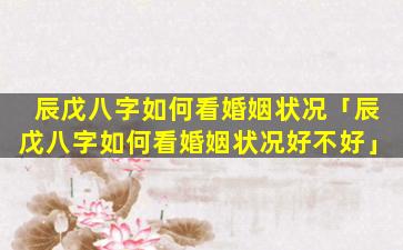 辰戊八 🦋 字看婚姻状况的 🐒 方 🦄 法