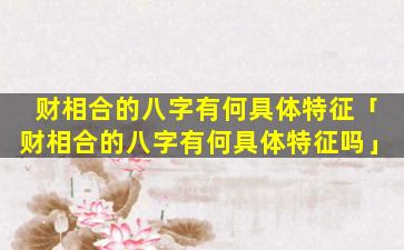 财相合八字的具体 🐳 特 🐟 征 🦟 :
