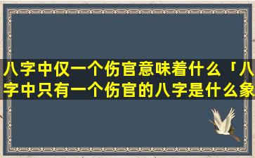 八 🌷 字中伤官只有一个,主吉凶参半。如,果伤官有,制。可,以发 🐟 挥其正能量带来良好的影响如果伤官无制则容易导致 🐘 偏激、叛。逆等负面后果