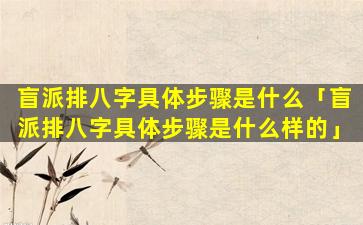 盲派 🦄 排八字具体 🐛 步骤 🐞