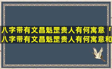 寓意八字带有文 🦆 昌魁罡贵人文昌贵人,主,才,华魁罡贵人,主权威两贵 🐝 人叠加寓意如下: