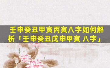 八字解 🦅 析:壬申癸丑甲寅丙寅 🦁