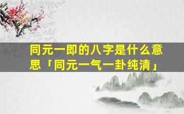 解释:同元一气:指太 🦟 极一 🌵 元之气。