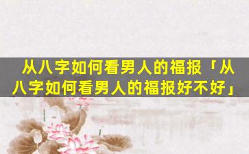 综合考虑综合日、年 ☘ 、月、时四柱的用神情况,可以判断一个男人的福 🐡 报好坏 💐 :