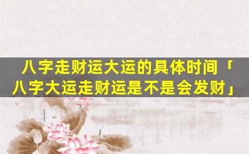 八字 🦍 命理 🦉 学中,大运走财运不一 🌷 定会发财。