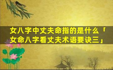 三、女命 🦊 八字看丈 🐕 夫术语 🌺 要诀