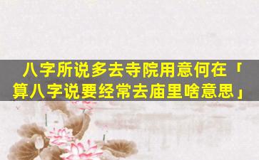 八字中所说的“多去寺院”有 🐯 两层 🐟 含义: