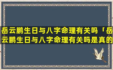 岳云鹏的生 🕷 日与八字命理的关 🐎 系的说法 🌼 是一种未经科学验证的迷信说法,缺乏科学依据。