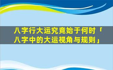 值得注意的是,八,字行大运的开始时间并无统一的标准不同学派之间可能会有不同的观点。因,此,在。进行八字预测时需要根据具体情况和所遵循的学 🐯 派来确定八字行大运的开始时间