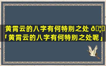 总体分析:黄 🐛 霄云的八字具 🦢 有以 🐦 下特点: