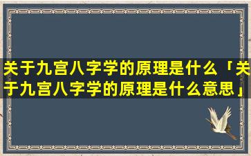 九宫八字学是一种中国古代 🦆 的命理学,它,基于阴阳五行和八卦的原理用来推算一个人一生的运势。其核心原理包括: