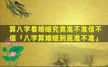 算八 🌻 字看婚姻 🐦 的准确性 🐞