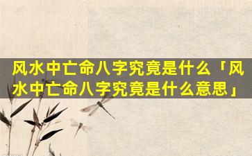 风 🦁 水 🐞 中,亡命是 🐎 指: