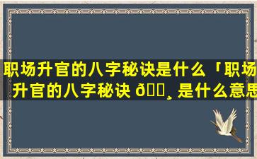 这是一种民间流传的升职秘诀,由以下八个字组成 🐝 :