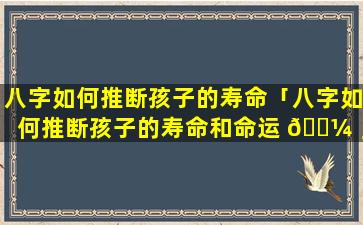 推断孩子的寿命和命运时,应,结合其八字 🌻 中的多种信息并进行综合判断。
