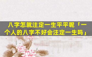 八字不能注定一 🌷 个人的 🐺 一生平平。