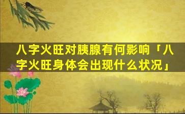 在 🌸 中医理论中,“火旺”是,指人体内的 🐺 阳气旺盛表现为热症在。五,“行理论中火”对,应。于,心。脏而胰腺不属于五行中的任何一类因此八字火旺对 🐈 胰腺没有直接的影响