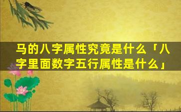 马的八字属性 🦆 :