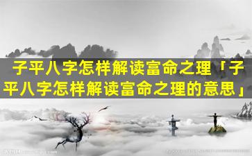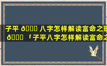 子平八字 🌵 解读富命 🌺 之 🦍 理