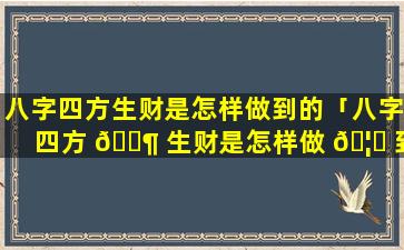 “八字四方生财”是一种风水术语,指,通过调整房屋或办公室的布局和环境改善财运和 🌺 事业运势。其具体做法是:
