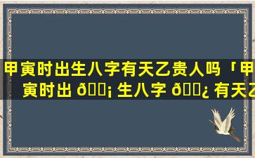 判断依据因此,甲,寅时出生八字没有天乙贵人因为这一 🐳 时柱对应的不是辛 🦅 酉。