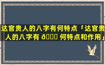 达 🌲 官 🐞 贵人 🌿 八字特点