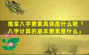 八字计算,又,称四柱八字命理学是 🐡 以人出生的年月日時的干支来推算命运的一种 🐎 术数 🐎 。其基本要素包括: