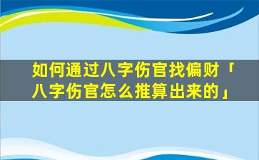 需要 🦢 注意 🐅 的是,伤,官找偏财的方法仅供参考不 🌲 能单凭一条准则判断偏财运势。还需要结合八字整体格局、大运。流年等因素进行综合分析