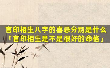 官印 🌺 相生 🐞 八 🦉 字的喜忌