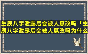 從理論上來說,生,辰八字一旦泄露 🦊 就有可能被人修改或篡改。