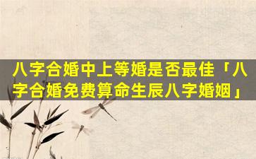 在八字合婚中,“上等 🦄 婚”并 🐧 不是最佳 🦁 的。