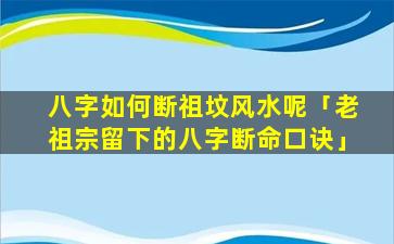 老祖 🐶 宗留 💐 下的八字断命 🌵 口诀