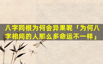 因此,八,字,同根只能说明基本格局相同但最终的命运结果还会受到多种因素的综合影 🕊 响导致同根“异果的”现象。