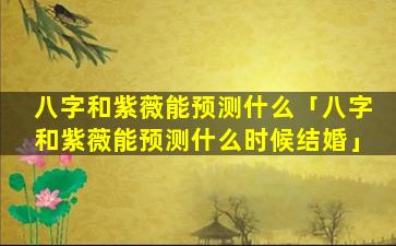 八字和紫薇斗数都可以用于预测婚姻,但不能精确预 🌵 测什么时候结婚。