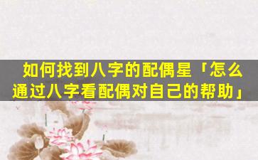 如何找到八 🌺 字 🐕 的配偶星 🐱