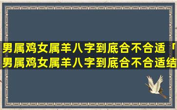 男 🐕 属鸡女 🐅 属羊的八字合不合 💮 ?